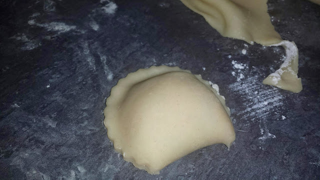 Dobre a massa e corte os rissóis com a ajuda de um copo.