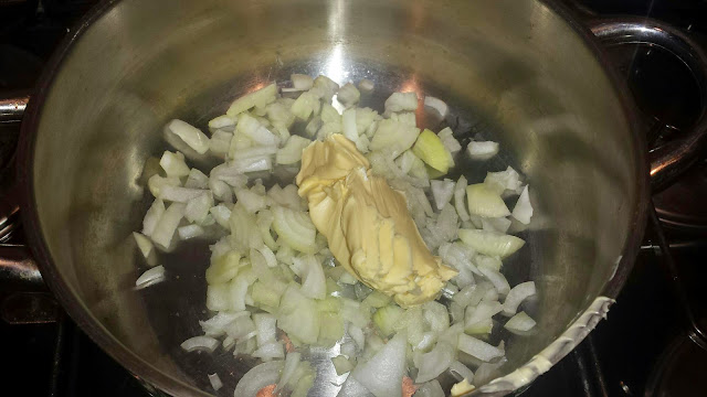 a margarina com a cebola.